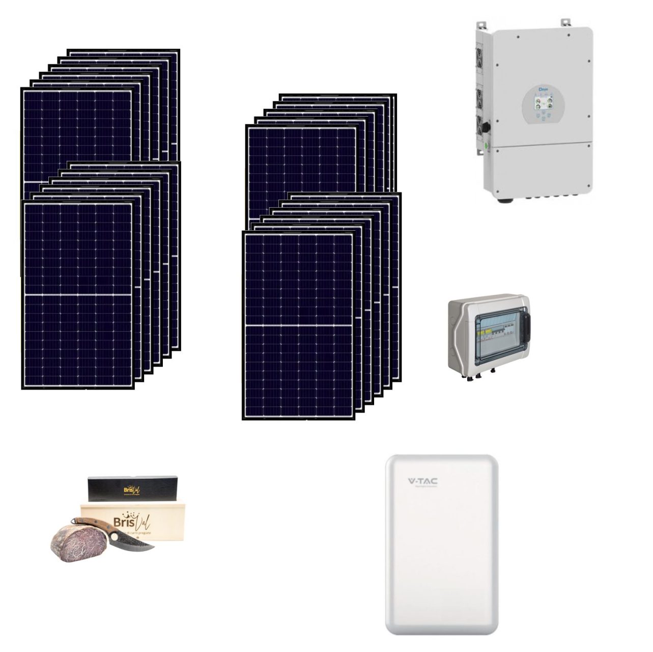 Kit OFF/ON GRID CEI021 Autoconsumo 9Kwp TRIFASE Pannello Solare TRINA SOLAR 450Wp Doppio Vetro Inverter 8Kwh DEYE con regolatore + Batteria litio 10,24Kwh 200Ah